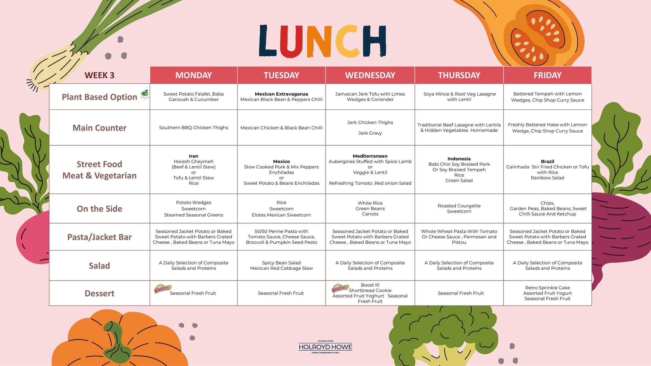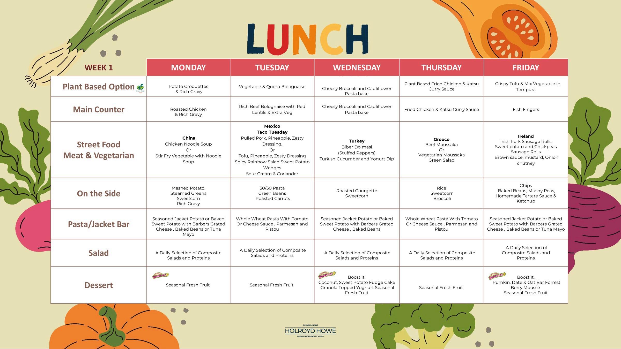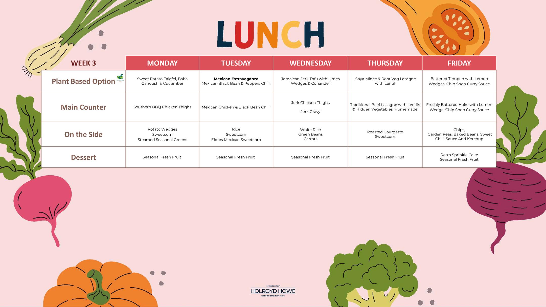Years 1 & 2Week 1Years 3 - 13Week 1Cheesy Brocco i and Cauliflower Pasta bakeYears1 & 2Week 2Years 3 - 13Week 2Years 1 & 2Week 3Years 3 - 13Week 3