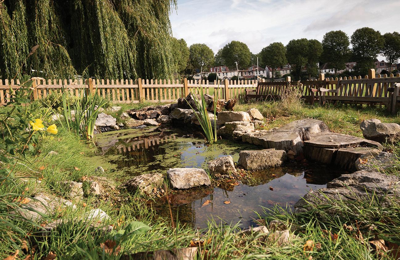 The Senior School ecology pond is is used by the Biology Department for outside lessons and is looked after by the Ecology Club who have planted native species hedgerows. The club aims to increase biodiversity on the College site, and the area has been fitted with bird feeders and a camera to watch the area flourish with wildlife.