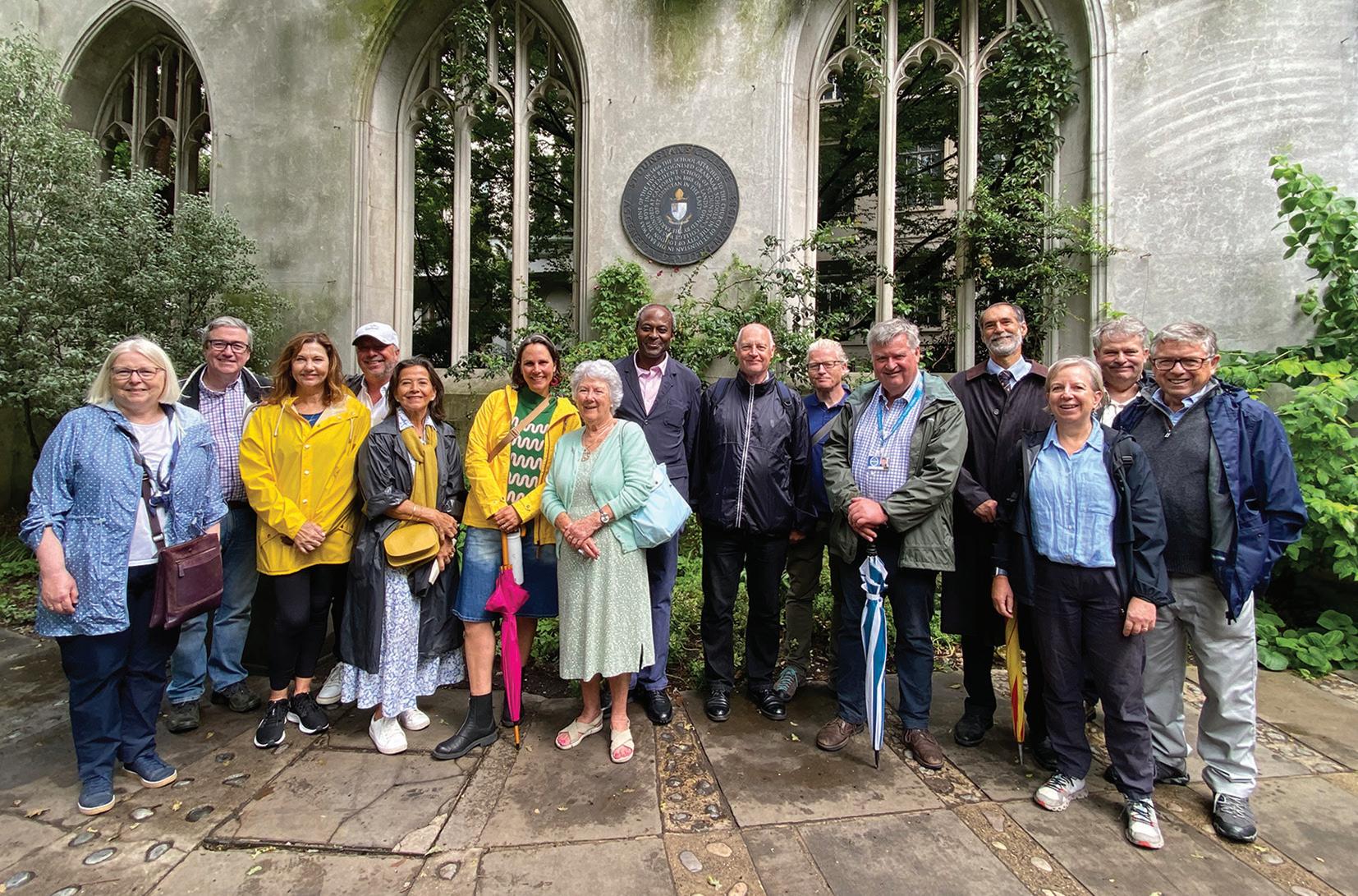 In June 2023, John Woolman ('76) kindly guided a dozen Dunstonian around the City from London Bridge to All Hallows, as a qualified Blue Badge Guide. We stopped at St Dunstan in the East of course….