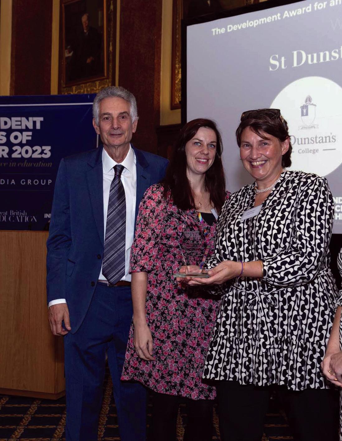 On that note, I could not let this reflection finish without mentioning that St Dunstan’s College won the Outstanding Fundraising Achievement at the Independent Schools of the Year Awards 2023 – a muchdeserved accolade for the work of the Development Office under Isabelle’s expert leadership, as well as testament to the generosity of our alumni community. This sits alongside other accolades accumulated in recent years, and I hope it makes you proud to see St Dunstan’s awarded coeducational school of the year (2020), senior school of the year (2022) and most progressive school in London (2023).