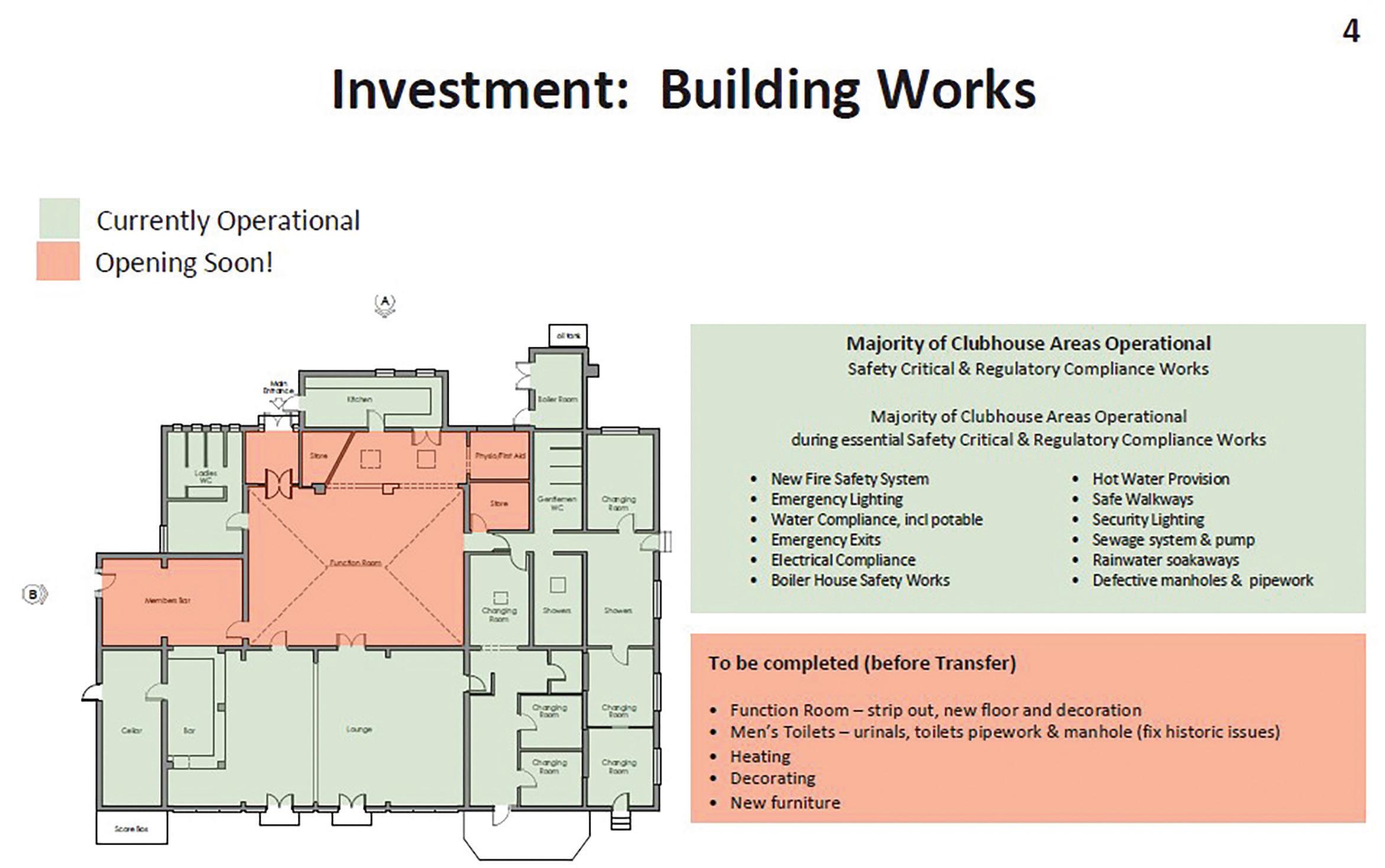Most of the building is already deemed fit for purpose for day-one operations, and the final upgrades are well underway. The men’s toilets are due to reopen shortly and - better still - the much loved Function Room will soon return to hosting club events.