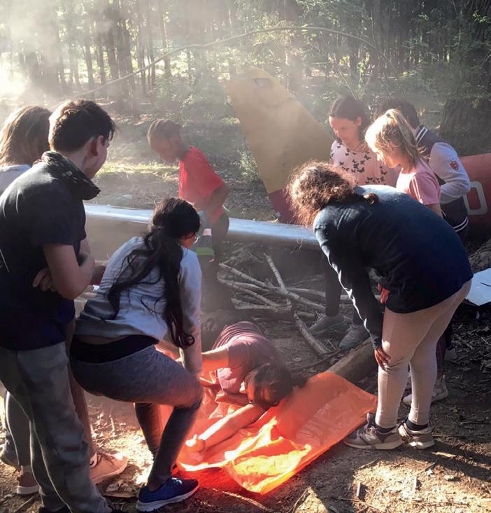 The climax of the trip had to be when the Year 7s saved the teachers from a ‘plane’ crash (left). Luckily for the teachers, the pupils did a sterling job, demonstrating incredible teamwork, by getting the teachers out of the wreckage and patching them all up with emergency First Aid bandages.