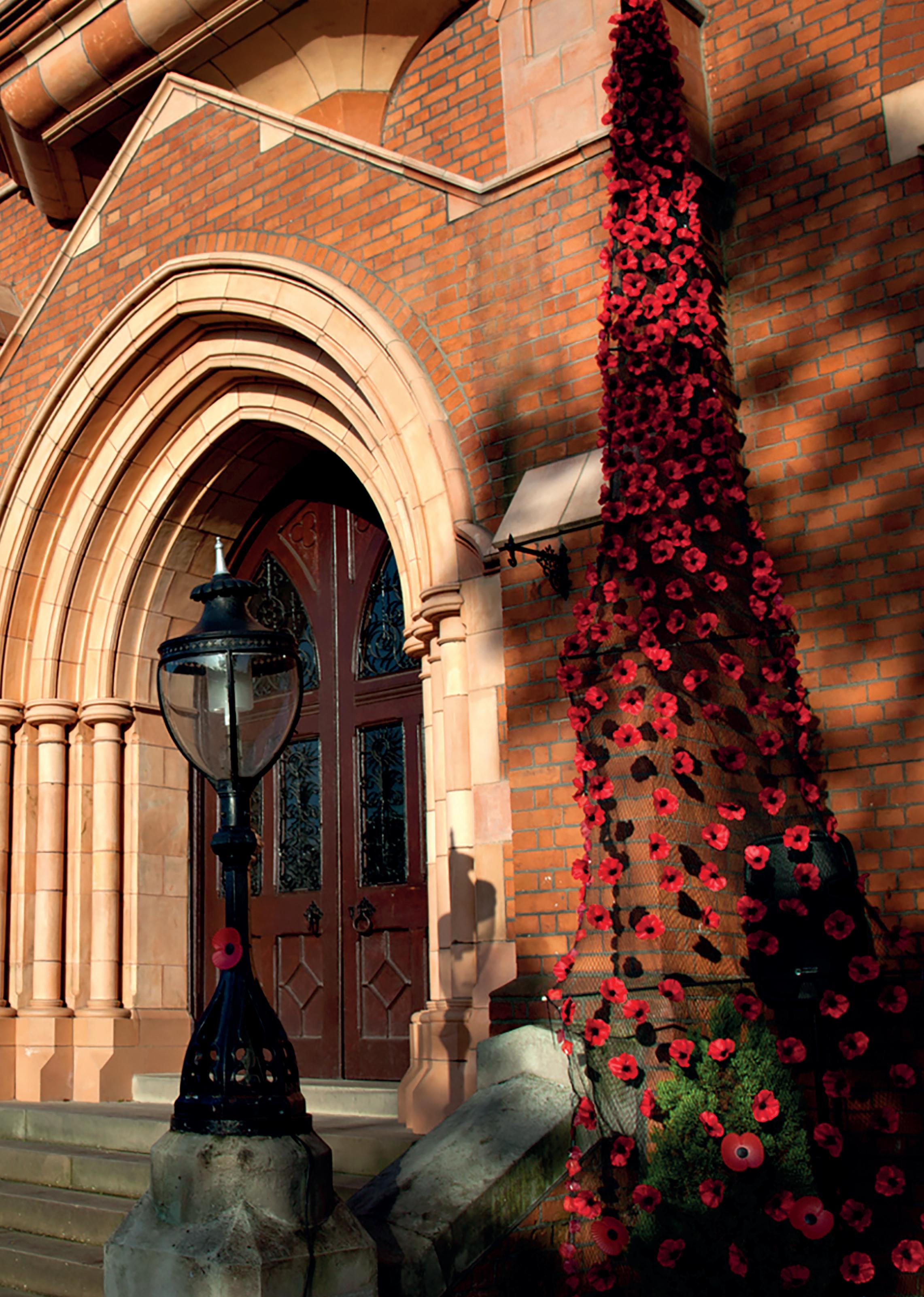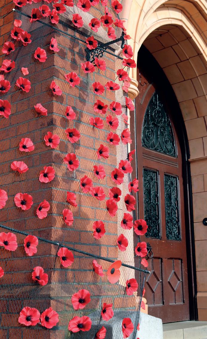The College unveiled a large poppy display to mark this year’s Remembrance Day, which featured more than 650 poppies. This included two ‘rivers’ of poppies, which hung from each side of the front entrance, and a giant poppy was also installed at the front of the College.