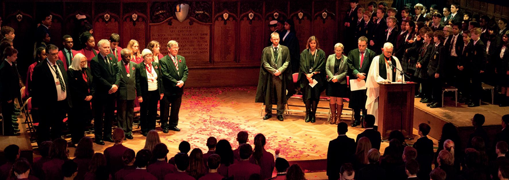The annual Service of Remembrance took place on Monday 11 November. Pupils and staff from across the College gathered in the Great Hall, which featured a sea of red petals, for a Remembrance assembly led by Canon Boswell and the Headmaster, Mr Nicholas Hewlett. During