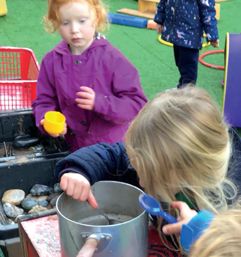 As the weather got cold, the Nursery children started to make and serve each other their very own ‘hot chocolate’. They used all sorts of interesting materials including sand, sticks and leaves. The teachers decided to make some real hot chocolate. First the children were served some and asked what ingredients they thought were put in. Then the class made their own. The children needed somewhere to serve this delicious hot chocolate so the Nursery Café was officially opened.