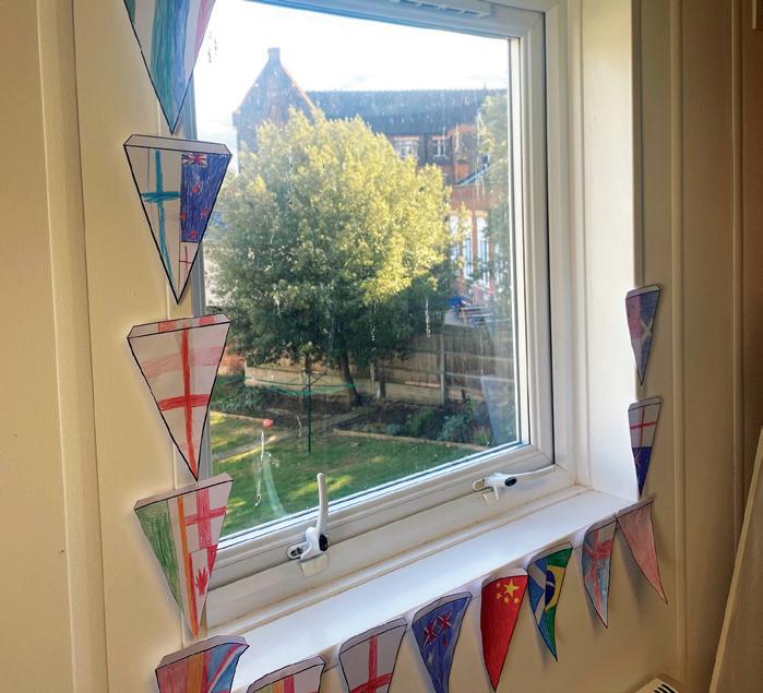 School, pupils made bunting out of positive messages and top tips for positive mental health.