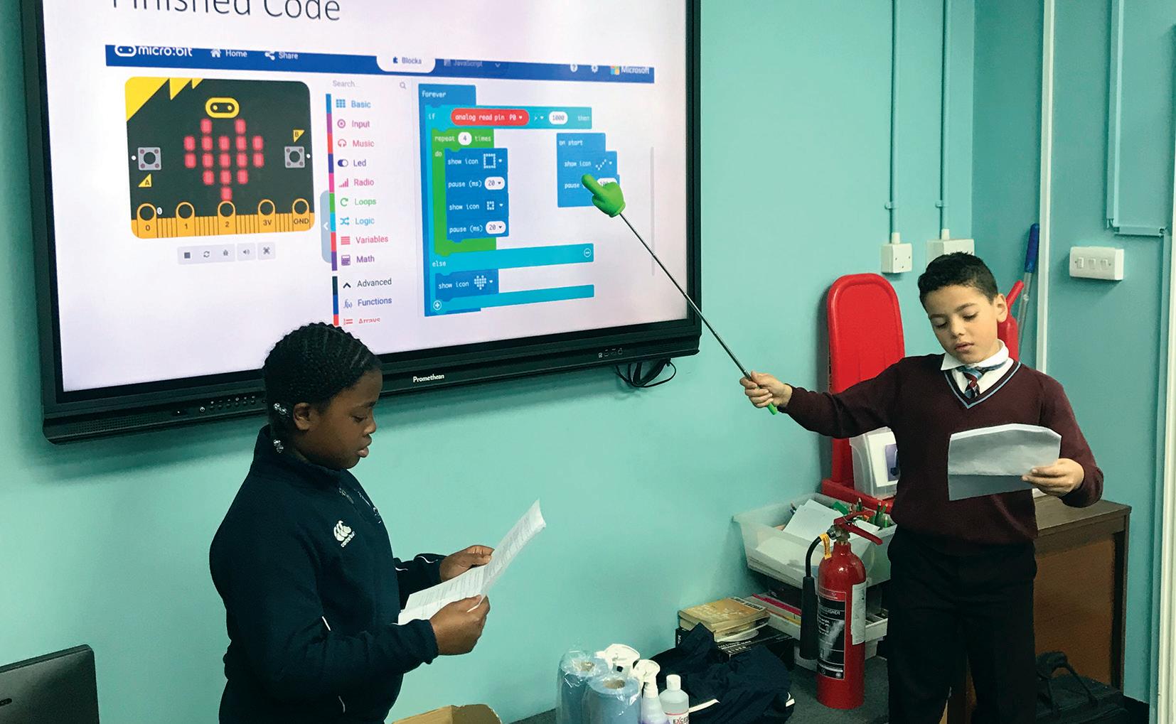 Microbit and took the children through a step-by-step guide to the coding and the reasons why each code was used. Each child in Year 5 learned what the Microbit can be programmed to do, the key properties it has (sensors) and then were taught how to code it using the online software.