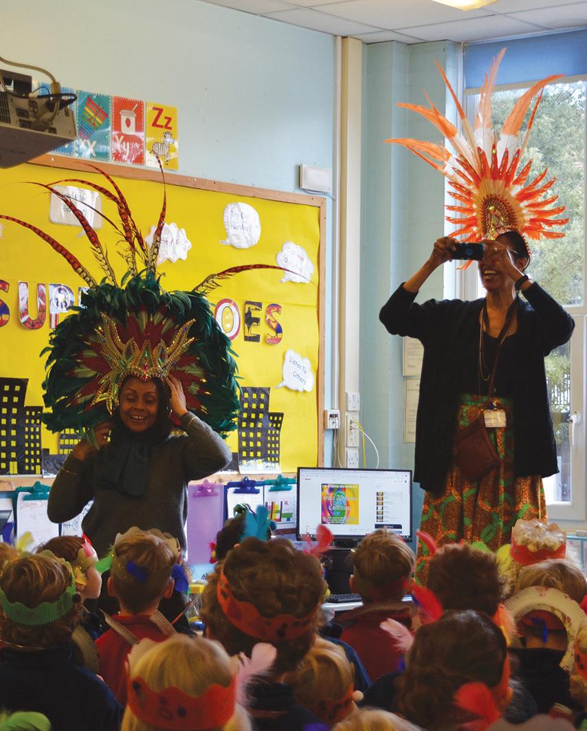 They also made African necklaces using paper plates and learnt all about carnival. They tried on some real carnival headdresses that were worn at the Notting Hill Carnival and made their own.