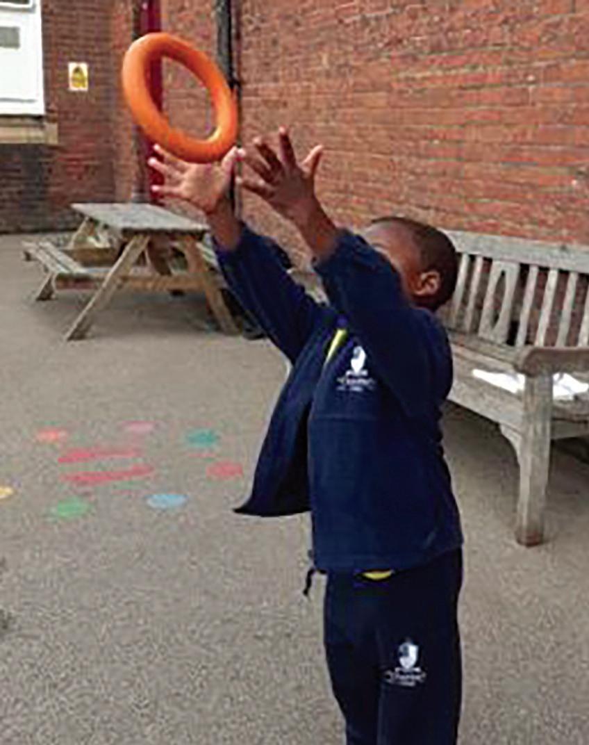 Nursery pupils have been working with quoits, using them to catch, balance and roll. They have also learnt how to keep a ball under control in their own area. They have been rolling, spinning and throwing, with some children being able to catch them too.