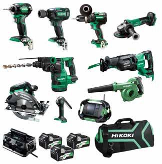 COMBINATION PACK KC36D10P3(HRZ) 36V Brushless Impact (Hammer) Driver Drill 36V Brushless IP56 Triple Hammer Impact Driver • 36V Brushless 12.7mm (1/2”) Impact Wrench, IP56 • 36V Brushless 125mm Angle Grinder with Paddle (DEADMAN) Switch • 36V Brushless SDS-Plus Rotary Hammer - NEW • 36V Brushless 185mm Circular Saw 36V Brushless Reciprocating Saw • 18V Digital Radio with Bluetooth 18V Blower & Vacuum • 18V Light • Li-ion Slide Battery A • 4 Port Multi Charger • Accessory Bag