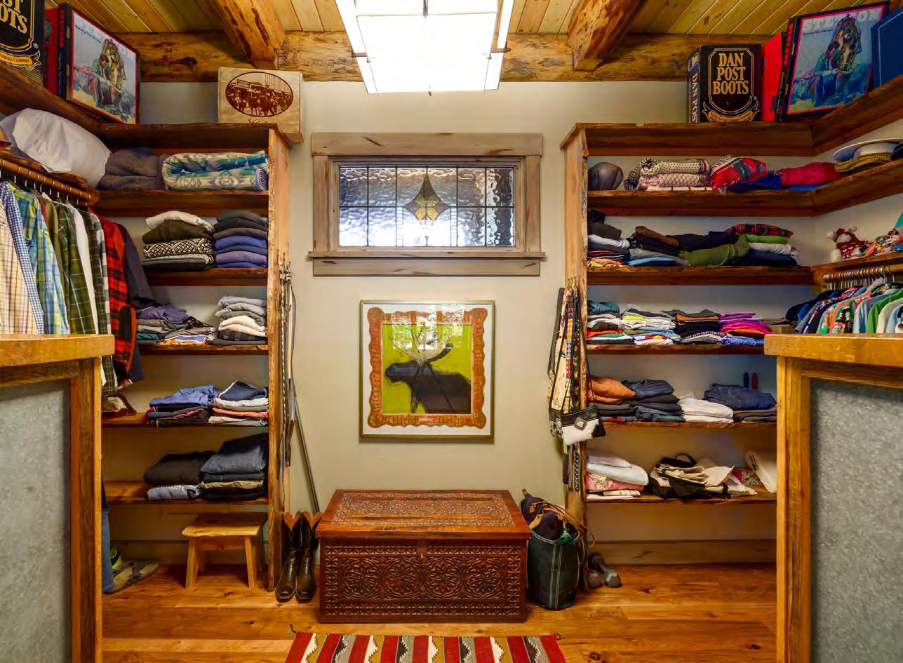 •En-suite bath- separate dual vanities w/ granite, air jet tub, walk-in shower, water closet, lg. walk-in closet & rustic built-ins