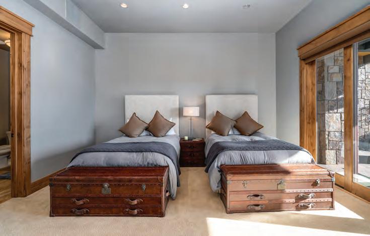 The second primary suite offers your guests their own private retreat where they can relax and get away from it all. The suite features views to the Ski Area, vaulted ceiling with wood beam accent, beautiful gas fireplace with tile surround, private flagstone patio and direct access to the backyard. An en-suite bath has a walk-in closet with built-ins, luxurious soaking tub, steam shower, make up vanity and separate water closet.