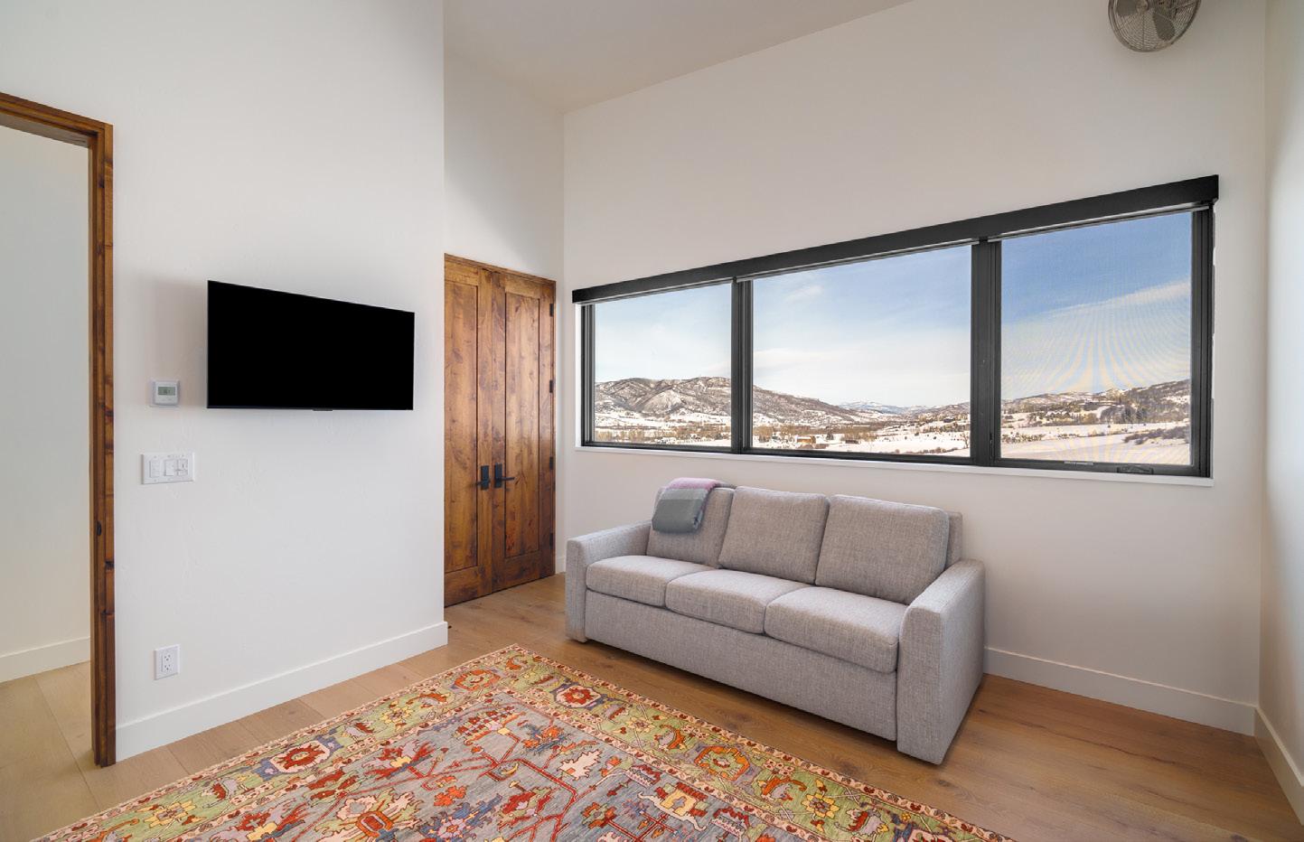 Welcome to this newly constructed home for all seasons in Alpine Mountain Ranch where an active lifestyle and community await. The interior and exterior features incorporate fantastic views, discrete function amidst fluid design and lots of custom features that elevate the “every day” to extraordinary. The great room is a generous space with a soaring Stone fireplace, flanked on both sides with custom 4 panel accordion doors that lead to a covered deck with spectacular views and a covered patio with built-in grill, hot tub and water feature. The kitchen is sleek yet subtle with leathered granite counters and Ash soft-close drawers and cabinets offering SubZero, Wolff, Miele and Cove appliances. The dining room boasts a built-in buffet and Vintec wine cabinet. A private office is adjacent to the primary suite and enjoys floor to ceiling windows, walk-in closet, soaking tub and a roomy shower. An additional bedroom suite plus a bonus project/art studio with walkout access to the back lies on the opposite side of the home and the laundry room steps out to a dog run. The secret loft above the butler’s pantry is a captivating retreat for kids young and old. The lower-level entry opens into a family room with a fireplace and dry bar. 2-bedroom suites occupy this level along with a fabulous bunk room. The 3rd bath is just cool sporting a steam shower which passes through to a large dry sauna. The mud room offers lockers to keep things tidy, some with outlets for boot heaters as well as laundry. The home boasts many smart features plus a 3-car garage with EV charging, radiant floor heat and a/c on the main level, pre-wiring for additional audio/video/wifi features both inside and out, and snowmelt for well-traveled paths. 2 large storage closets are perfectly aligned for an easy install should an elevator be desired. Alpine Mountain Ranch is located just about 5 minutes from the slopes of the Steamboat Ski Area and an array of community activities to enjoy as an owner.