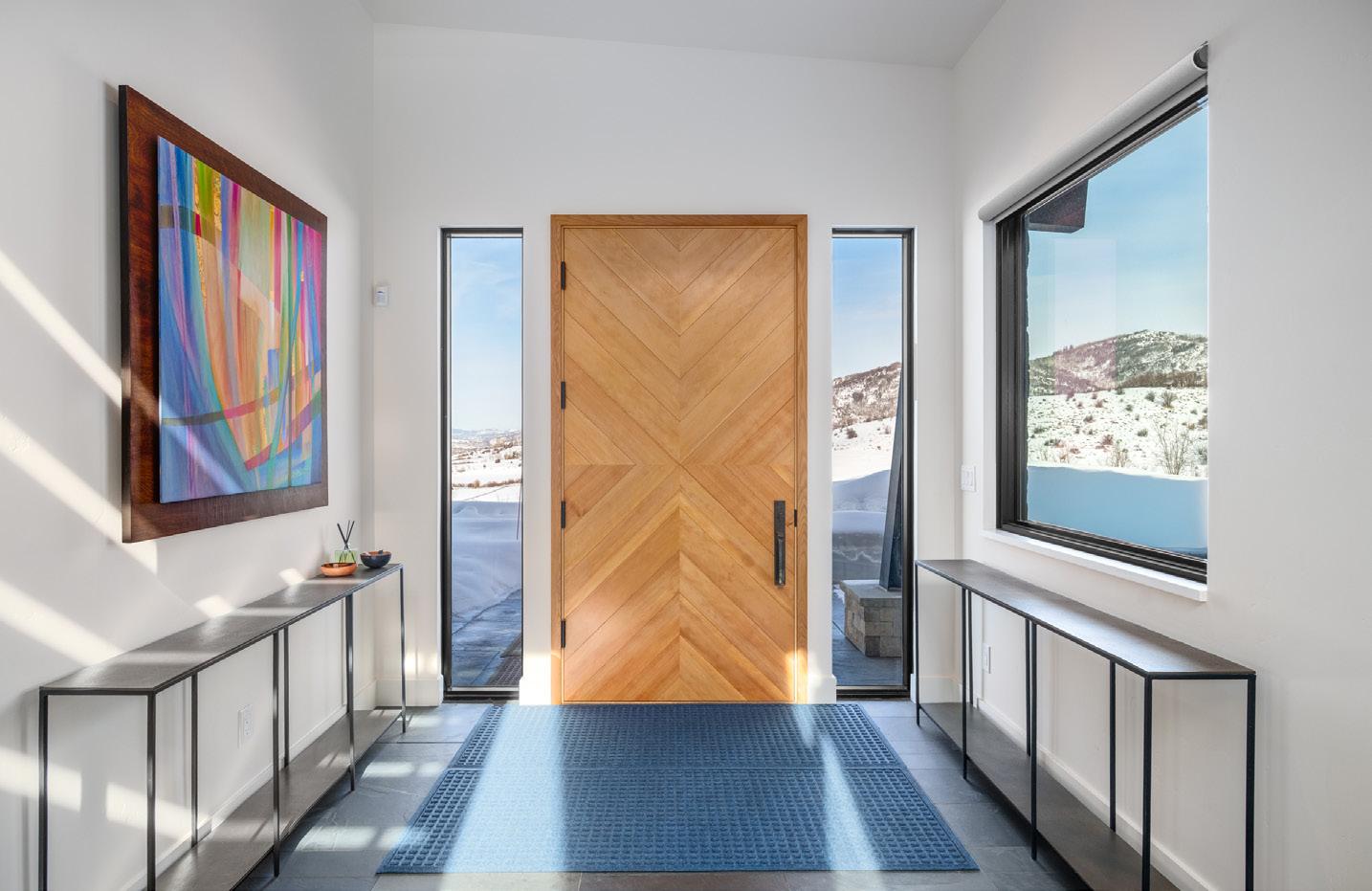 • 22’ vaulted ceiling, Hemlock T&G, Douglas Fir wood & steel accent beams