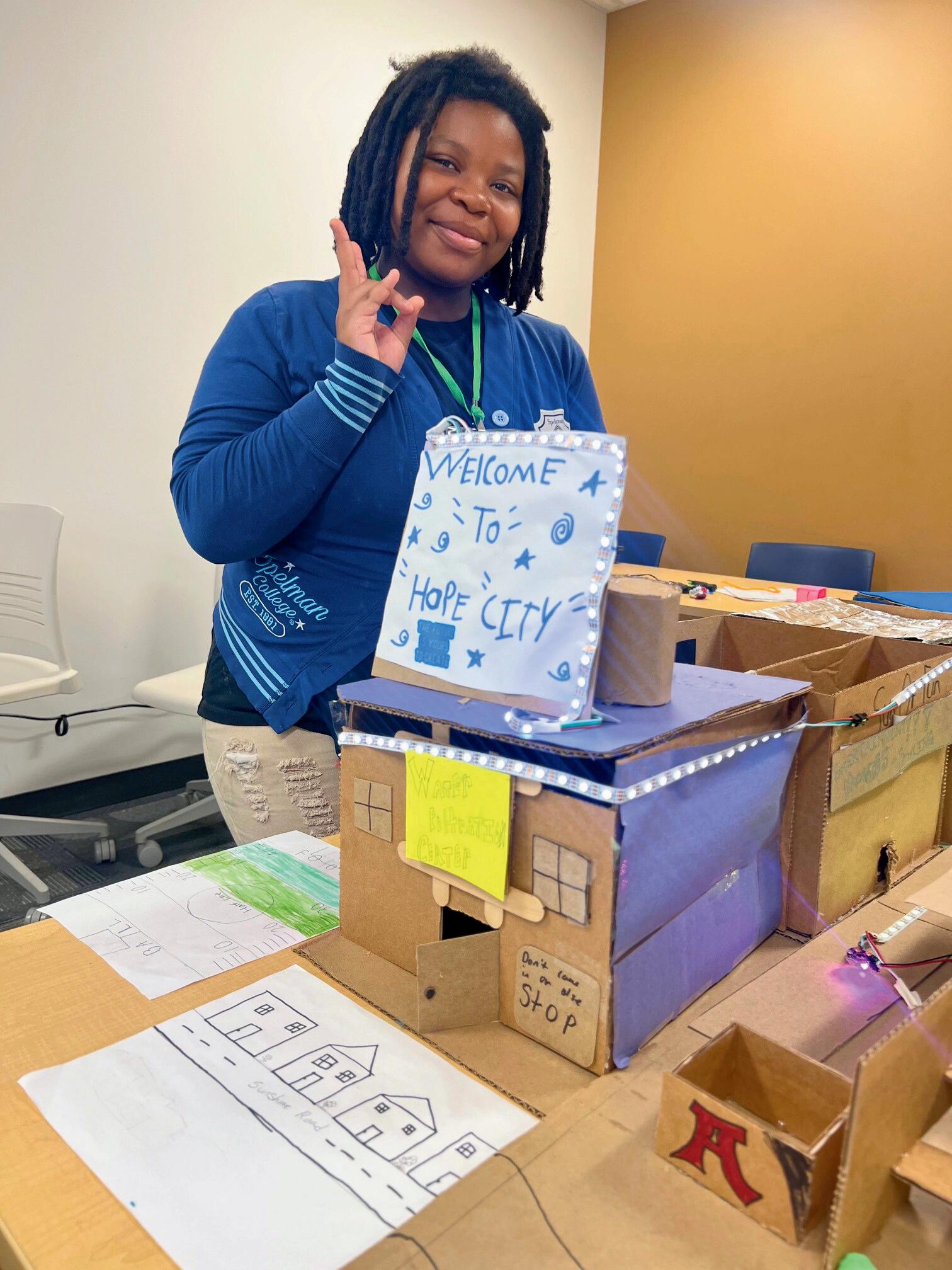 “She loved the STEAM Truck Camp, where the theme focused on urban planning. Her group built a mini city, forming a local government that divided responsibilities across community services, infrastructure, utilities, and sustainability. She stepped into a leadership role, helping organize her peers and bring their vision to life. Her favorite part was designing the city’s green features: adding solar panels, rainwater collection systems, and rooftop gardens to address food deserts. I was incredibly impressed by her creativity, leadership, and problem-solving throughout the project.”