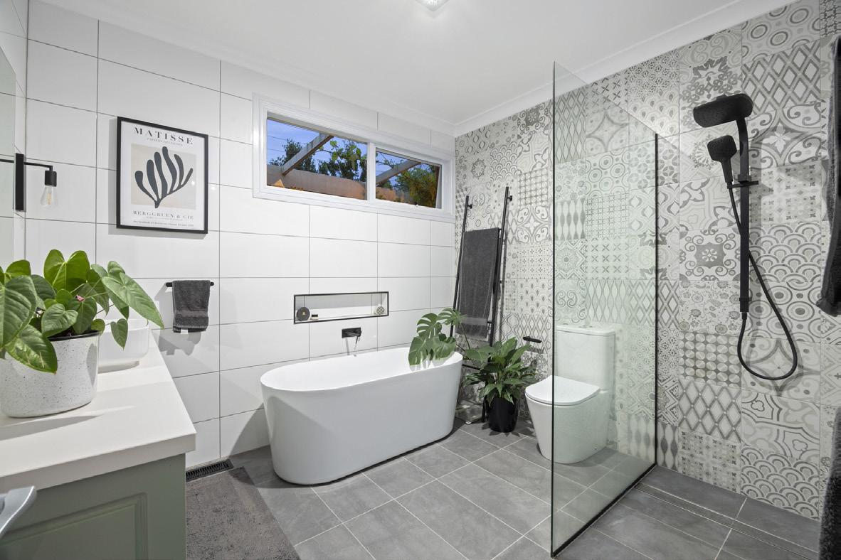 Everyday comfort is ensured with ducted air conditioning, split systems, and ducted heating in the extension. The home also includes a European-style laundry, a modern bathroom with walk-in shower and freestanding bath, and a separate powder room for guests.