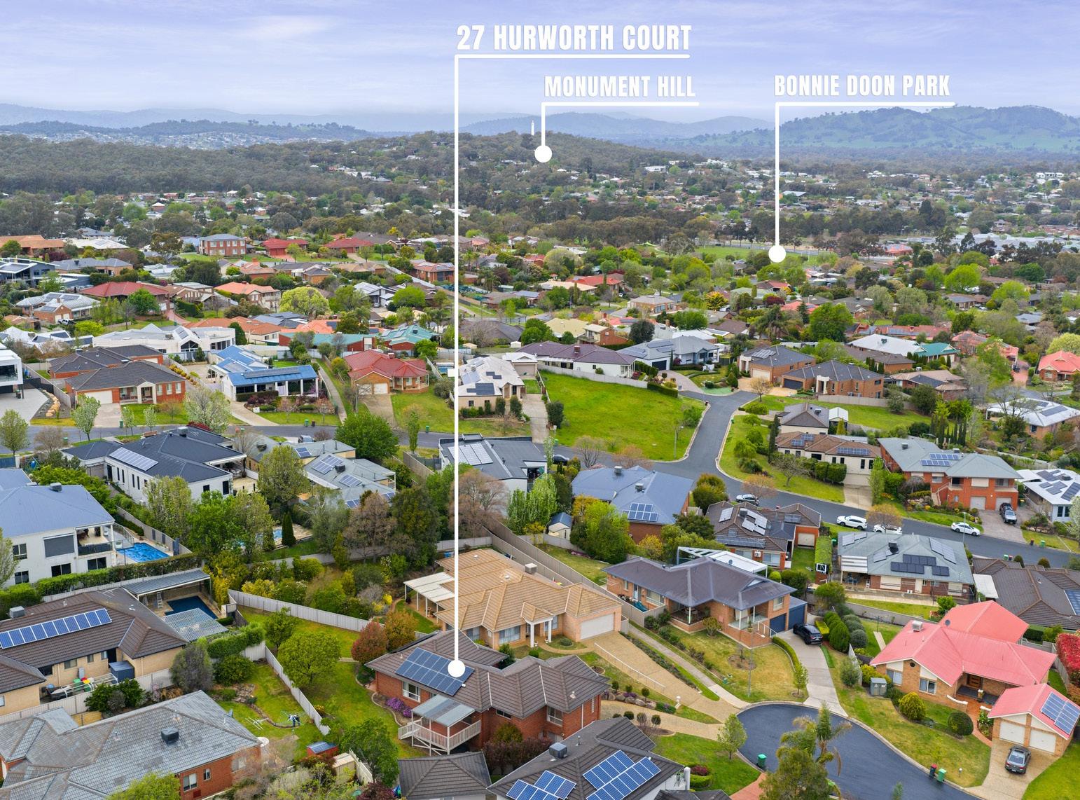 The kitchen takes centre stage, boasting an electric oven, induction cooktop, dishwasher, and ample cupboard space. Adjoining the kitchen, the spacious lounge captures sweeping views over Albury and the rolling hills beyond. A dedicated dining area provides the perfect setting for both intimate gatherings and lively entertaining, while glass sliding doors seamlessly extend the space out to a private alfresco.