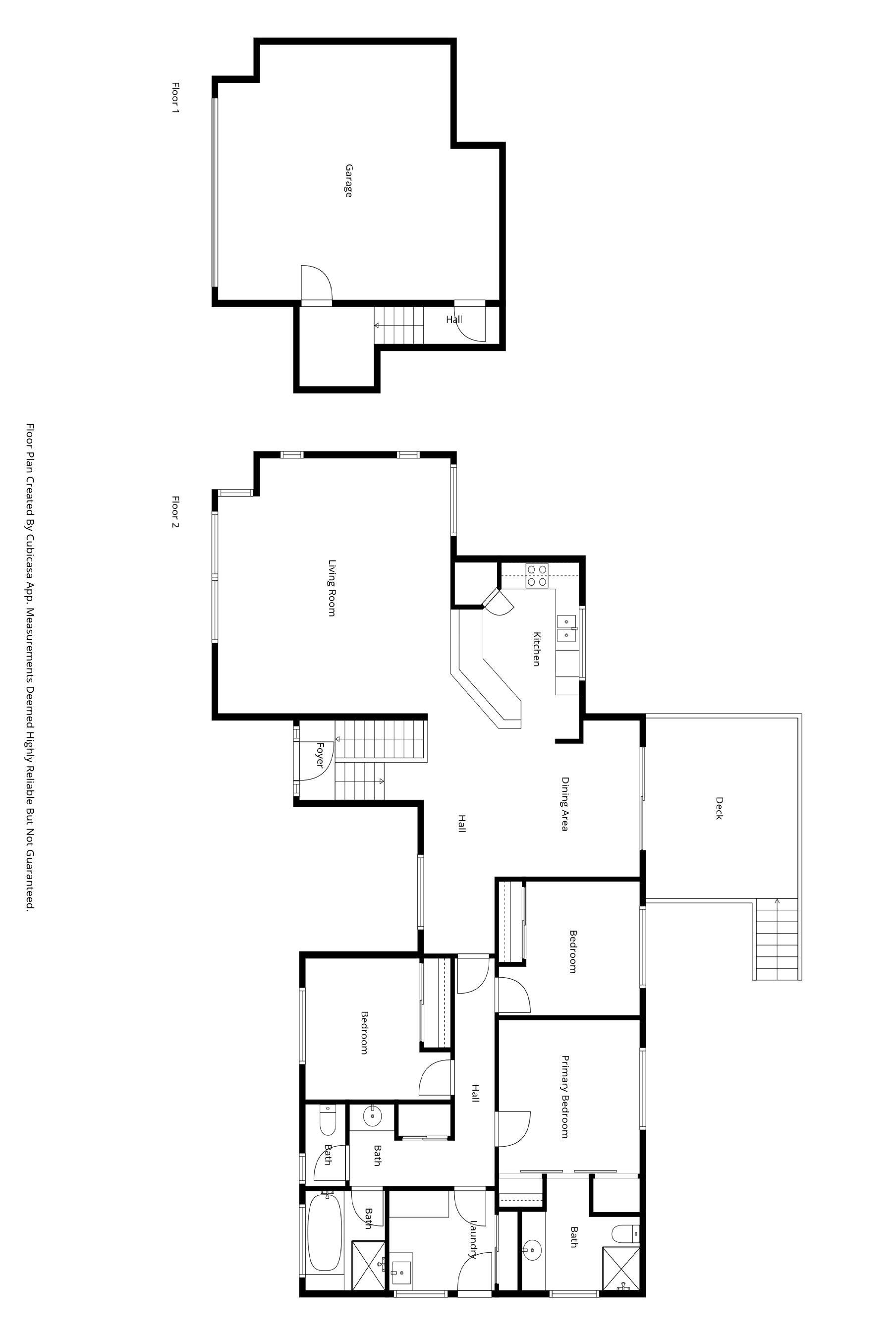 The floorplan unfolds across two levels. Upon entry, you are guided upstairs to the main living zone, which hosts three generous bedrooms, two bathrooms, a laundry, and an open-plan kitchen, living, and dining area.