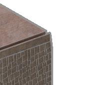 Per unire i moduli in orizzontale e in verticale sono state predisposte delle placche che vanno a posizionarsi sotto il rivestimento esterno. Questo è composto da due strati di legno, uno con i corsi verticali, che forma una cornice esterna, e quello sottostante con i corsi orizzontali. Sono tenuti insieme e vincolati al pannello sottostante tramite viti.