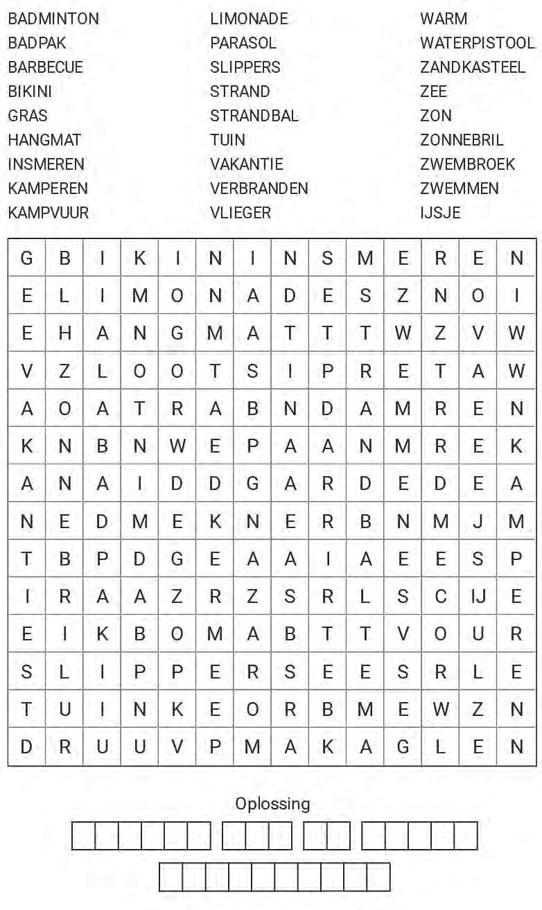 Zoek de onderstaande woorden en los de puzzel op. Mail uw oplossing naar: puzzel@stedendriehoek.nl o.v.v. Vakantiepuzzel Kijk Uit.