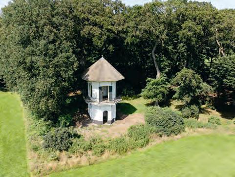 ring. Daarnaast hebben we bij het Jachthuis een theekoepel. Daar kun je snacks kopen, een klein broodje, een ijsje, zulke dingen. In het zuiden van het Park is het Theehuis de Kemperberg. Dat is een heel mooi houten gebouwtje. Het is niet elke dag open dus het is belangrijk om even op de site te kijken wanneer hij geopend is. Dat is ook een pleisterplaats met een toilet en waar je wat kleine dingen te eten en drinken kunt krijgen.”