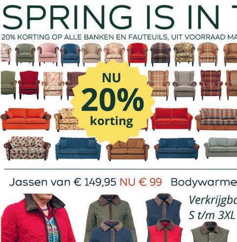 Wessels Wonen en Slapen Korenmolen 2 • 8124 BA Wesepe • tel. 0570 - 5917 08 Koopavond: op afspraak Dinsdag t/m Vrijdag: 9.30uur tot 17.30uur Zaterdag: 9.30uur tot 16.00uur www.wesselswonenenslapen.nl Paas voordeel De nieuwste collectie PVC vloeren is binnen En... natuurlijk een ruime keus! The original Boxspring Ninety. Als beste getest! 15% voordeel op onze matrassen Fris wakker worden met Kies voor een heerlijk ventilerend matras, van Auping. Kom snel langs in onze winkel en laat je adviseren. We hebben een ruime collectie buiten- en binnen zonwering