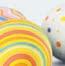 In elke basket zit een gekleurd servetje. Hein heeft een lichtgroene, egel een blauwe. De schapen een rode met gele stippen en het zwarte rund, lief maar niet snugger, heeft het gele servet.