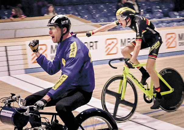 De derny gaat harder en harder. In een waas zie ik publiek. Nog vier rondjes, roept de speaker. Steeds sneller zoef ik over het glimmende hout langs de tribune. Straks gaan we sprinten!