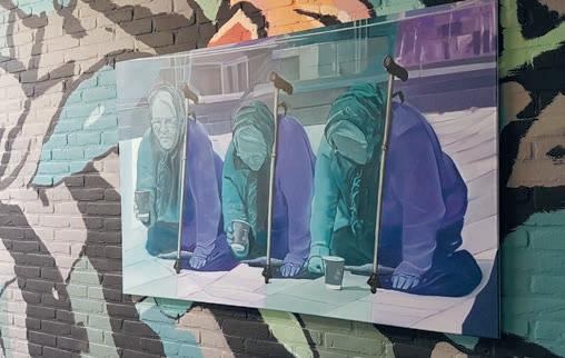 kunnen leven. Toch benadrukt de kunstenaar dat zijn kunstwerken niet moralistisch bedoeld zijn. Ze gaan voor hem veel meer over het vinden van een beeldtaal waarin compositie, kleur en het afgebeelde samenwerken en blijven boeien. Over hoe je blik door het schilderij beweegt en blijft zoeken naar verrassingen. Misschien neem je daarna ook iets van die nieuwsgierige blik mee de straat op. De wereld aan onze voeten is immers veel kleurrijker dan we in één oogopslag kunnen zien. Sytze Woudsma