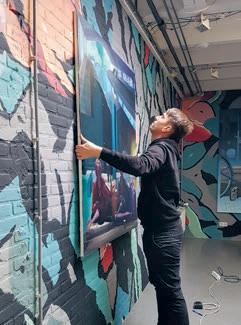 Woudsma exposeerde begin dit jaar in de Kunsthalte op het Stationsplein in Deventer. Nu maakt hij zich de tentoonstellingsruimte in Kunstenlab, Havenplein 20, volledig eigen. Zijn muurschildering vormt samen met zijn schilderijen een ruimtevullende installatie. De tentoonstelling ‘Straatleven’ is afgelopen zaterdag geopend.
