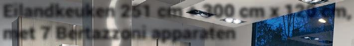 Eilandkeuken 251 cm + 300 cm x 120 cm, met 7 Bertazzoni apparaten