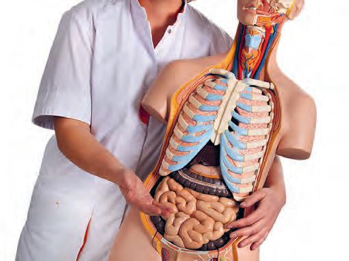 Verpleegkundige toont de darmen in een medisch model. (Foto: Medische Fotografie Gelre ziekenhuizen)