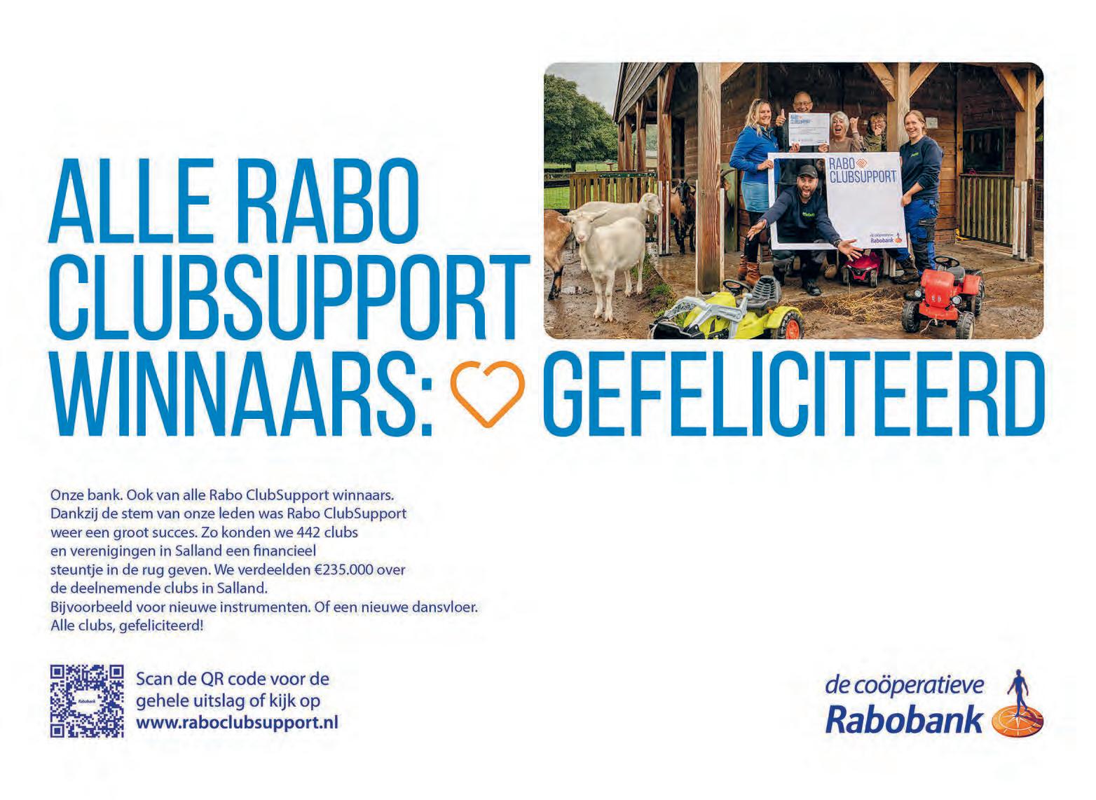 In Salland hebben in totaal 442 clubs meegedaan met de Rabo ClubSupport actie. Daarvan zijn 65 sportverenigingen uit de gemeente Deventer uitgenodigd voor de cheque-uitreiking in de Deventer Schouwburg. In Salland is een totaalbedrag van €235.000 verdeeld over de deelnemende clubs en verenigingen ter ondersteuning van de gestelde doelen en ambities.