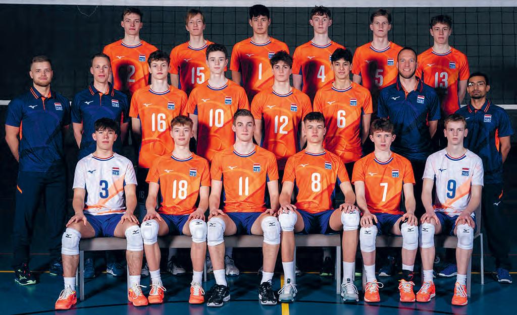 Volleyballer Micha Lammertink is jeugdinternational. Hij zit links vooraan met nummer 3.