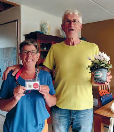 Sluiseman, ambassadeur van Stichting Bulungi een prachtige cheque in ontvangst nemen van Xandra Backers, vrijwilliger bij Wereldwinkel Deventer. De donatie bedraagt maar liefst € 1000,- en dat komt heel goed terecht bij de nieuwbouwplannen van Bulungi.