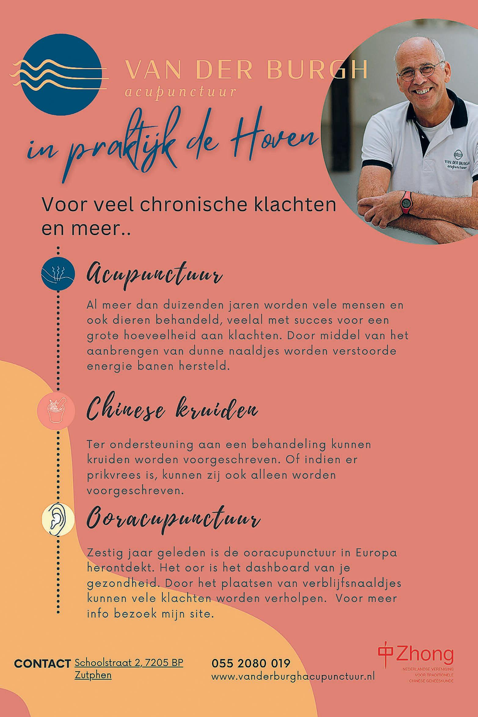 Homeopathie praktijk: zaterdag 10.00-12.00 uur en op afspraak via telefoon: 0575-573103.