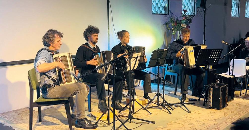 en zingen met de fantasti sche band, bestaande uit een groep van 25 enthousiaste muzikanten uit Apeldoorn en omstreken. Zowel de muzi kanten als de hits wisse len elkaar in hoog tempo af