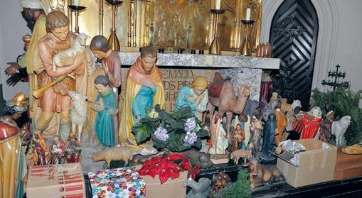 diorama’s: kleine voorstel lingen uit het kerstverhaal. Zo bouwt men een straatje na uit Nazareth, waar Jezus opgroeide. Een stukje woes tijn met een bedoeïenen tent waar de drie koningen op doorreis overnachten. En er wordt met kunstgras een herdersveld aangelegd met een kampvuur. Bij dat alles