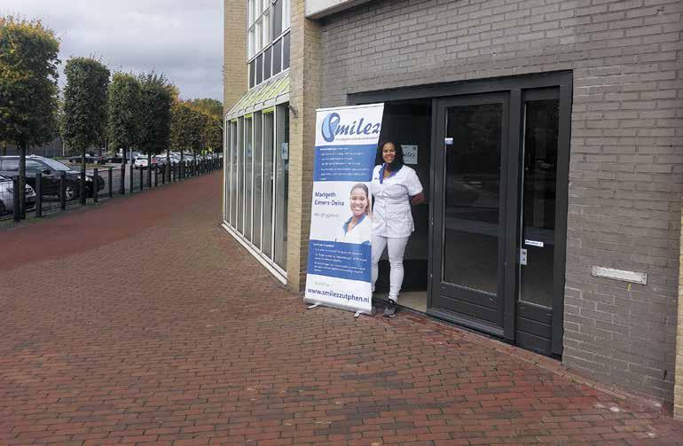 Je gaat nu werken met twee stoelen, waarom? “Heel fijn, ja! Het was tijd voor verandering en alles in eigen beheer te hebben. Onze eigen wachtruimte, toilet en een grotere behandelkamer, die de mogelijkheid biedt om met twee behan delstoelen te werken. Daarvan is er één voor gediplomeerd Preventie Assistent Raffaela Lopez. Zij richt zich op gebitsrei niging en begeleiding bij preventie door instructie en voorlichting. Beiden zien we ons werk als een roeping en dat maakt het ook zo fijn om een volledige eigen locatie te hebben aan de Runneboom 10a in Warnsveld. Fijn bij een winkel centrum, makkelijk toegankelijk en vrij parkeren. We hebben er heel veel zin in en heten iedereen van harte welkom.”