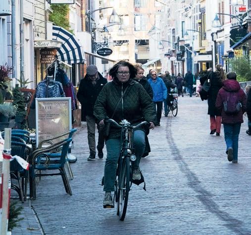 Ook de deftige heren op hun hoge fietsen zijn inmid dels gewend dat ze hier aan de andere kant van de straat moeten fietsen en crossen door de smalle straatjes alsof