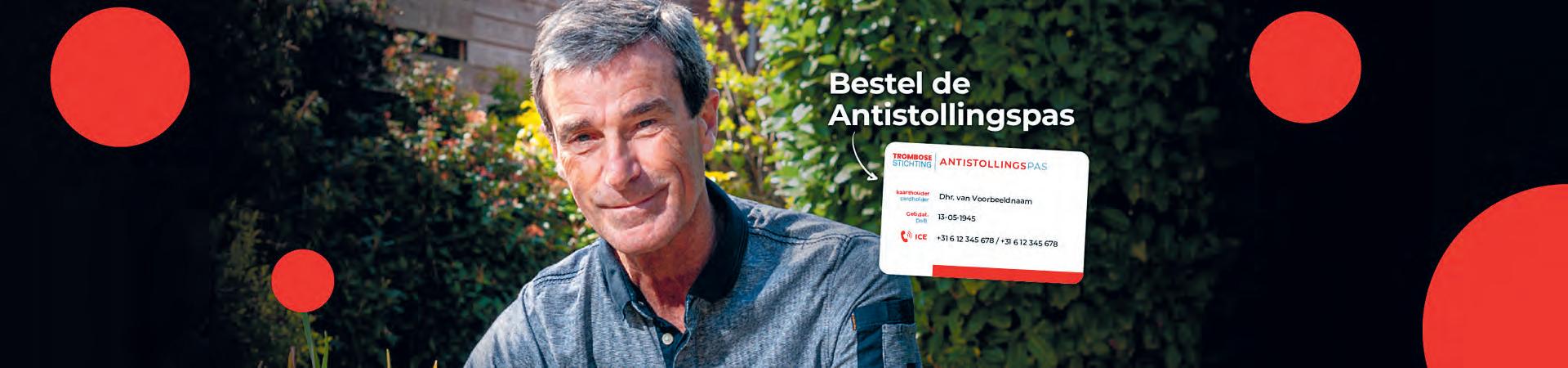 medicatie u gebruikt. Soms is het nodig om te stoppen met het gebruik van bloedverdunners, om ernstige bloedingen te voorkomen. Vraag de pas gratis aan via trombosestichting.nl/ stedendriehoek.