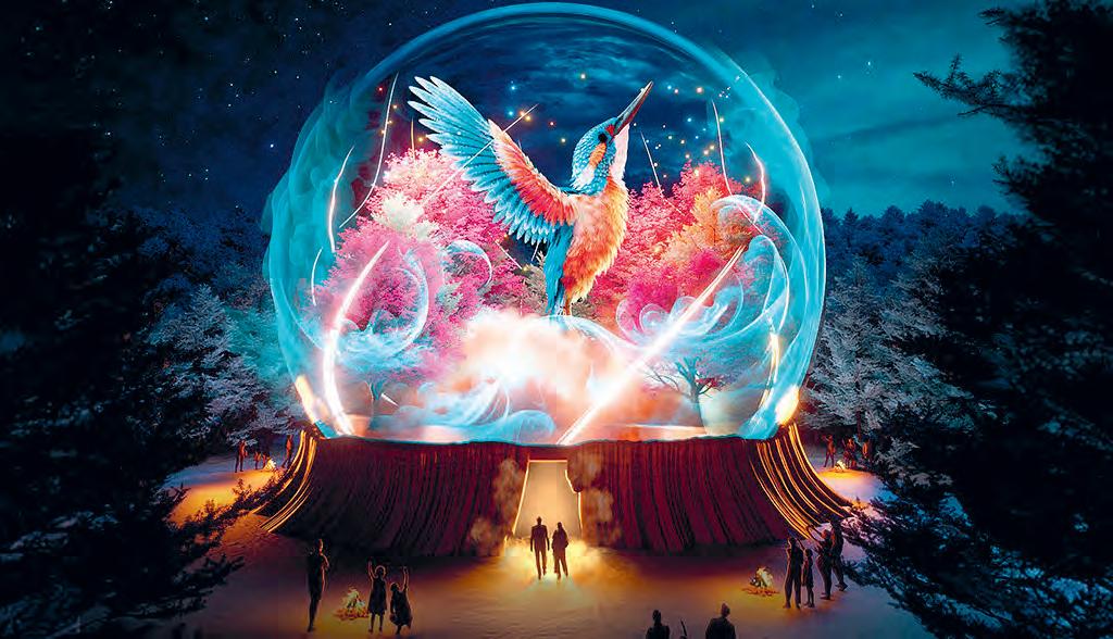 Apenheul omgetoverd in Winterheul. Tijdens deze eerste editie wordt het verhaal van de ijsvogel verteld tijdens een magische avondwandeling van 2 kilometer door het donker,