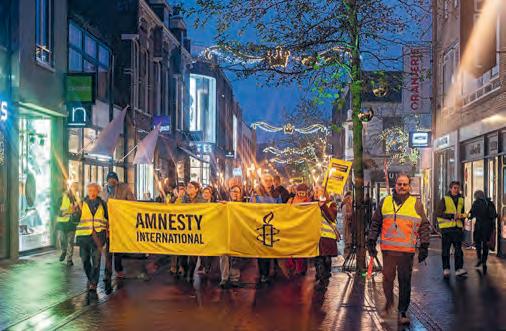 wordt op prijs gesteld). Medewerkers van Amnesty International Apeldoorn lopen rond met koffie en thee en tussen 17.30 en 18.30 uur is er soep en een broodje. Van 17.00 tot 18.00 uur speelt Judith Hoogeveen op de harp. Na het welkomstwoord houdt wethouder Danny Huizer om 17.30 uur een toespraak. Lees verder op pagina 3.