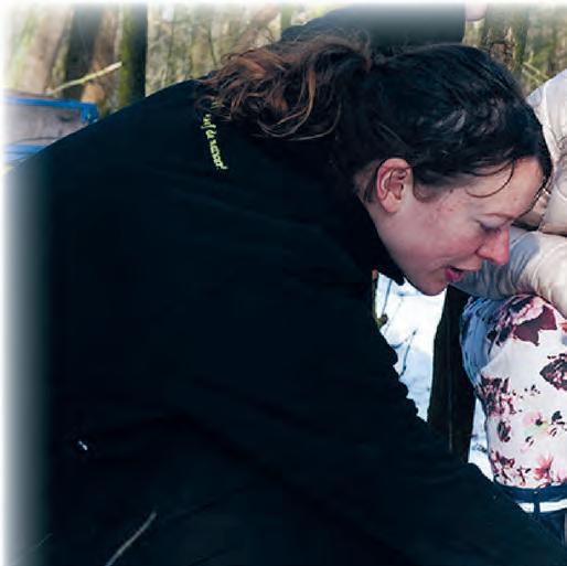 “De meeste scholen kwamen vijf dagen, een enkele school kortte het in tot vier. Maar in de basis van de kampen die we organiseerden stond natuur centraal. We wilden de kinderen helemaal onderdompelen in natuurbeleving, door verschillende modules aan te bieden. Om ze een beetje te laten wennen de eerste dag, lieten we ze vaak een verkenningstocht lopen, aan de hand van een route die uitgestippeld was. Met behulp van een fotokaart gingen ze de route lopen. Dan kregen ze onderweg allerlei vragen waarvoor ze het landschap wat beter moesten gaan bekijken. Ze moesten antwoord geven op de vragen en losten dan een raadsel op. Dat was hun eerste verkenning van het landgoed. En gedurende de week gingen we steeds verder de diepte in wat betreft natuurbeleving. We gebruikten een module over veldbiologie: kijken naar de kringloop van de natuur. Hoe werkt alles in de natuur en hoe hangen dingen met elkaar samen? Vaak gingen we naar een stukje landgoed om ter plekke onderzoek doen. Met grondboren aan de slag om de lagen van de bodem te bekijken. En met schepnetten en schepjes in de weer. We maten bomen op, daar leerden de kinderen speciale technieken voor.”