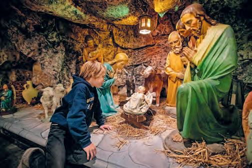Het kerstverhaal wordt op een bijzondere en interactieve manier verteld: deurtjes kunnen open, engelen verschijnen, vertellen of maken muziek, lichtjes maken de verschillende diorama’s extra spannend, kaarsen branden. De tocht eindigt bij de monumentale kerststal van de kerk (uit