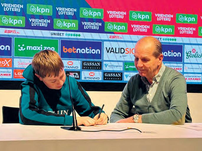 Stipt om 09.00 uur zitten de jongeren klaar om het contract te tekenen. Niet alleen Jan Willem van Dop is aanwezig bij dit heuglijke moment, maar ook Paul Bosvelt komt speciaal even langs. Want ja, als je een contract tekent bij een betaaldvoetbalclub, moet de technisch directeur daar natuurlijk wel bij zijn. De eerste deelnemer die een contract tekent heeft een shirt van Paris SaintGermain aan. “Dat is voor het eerst dat we een speler van PSG contracteren”, zegt Bosvelt, waarna de hele zaal