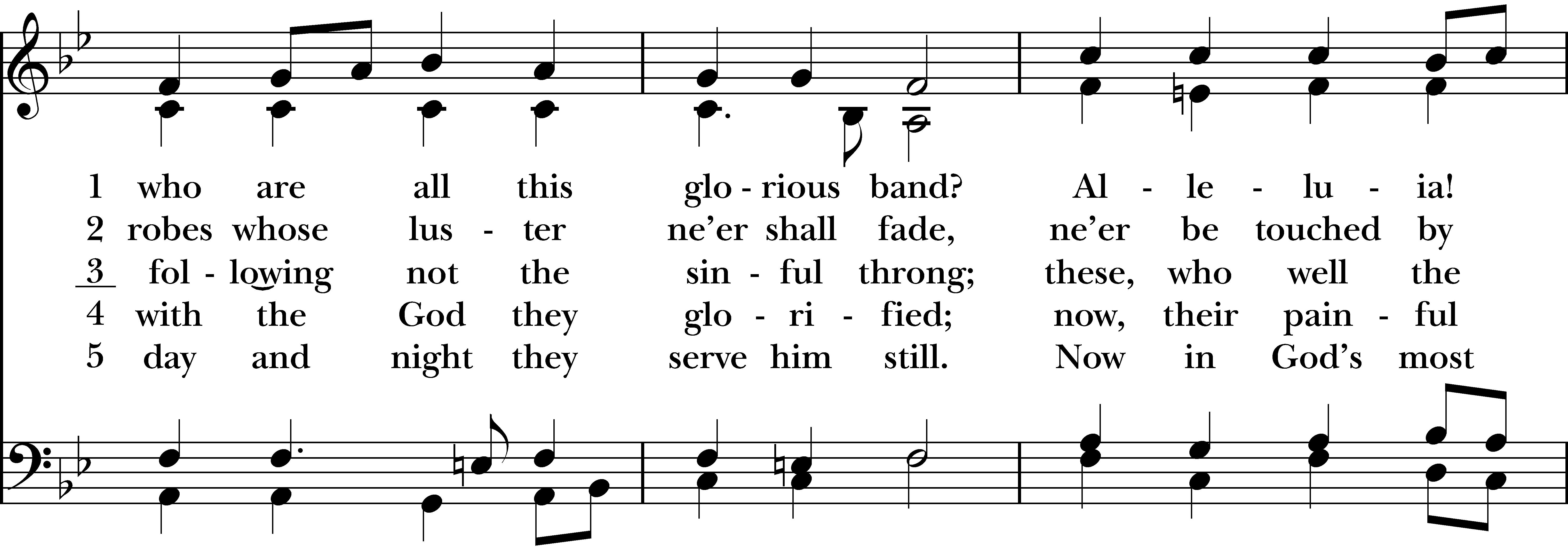 Stand as able and sing verses 1,2,3 followed by the Gospel reading, and then verse 4,5. Hymnal 1982, #286