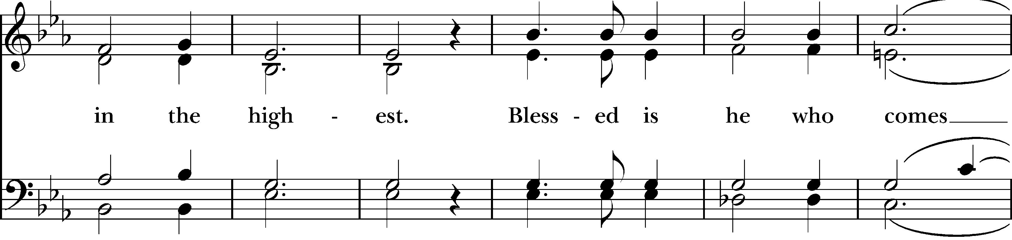 Blessed is he who comes in the name of the Lord. Hosanna in the highest.