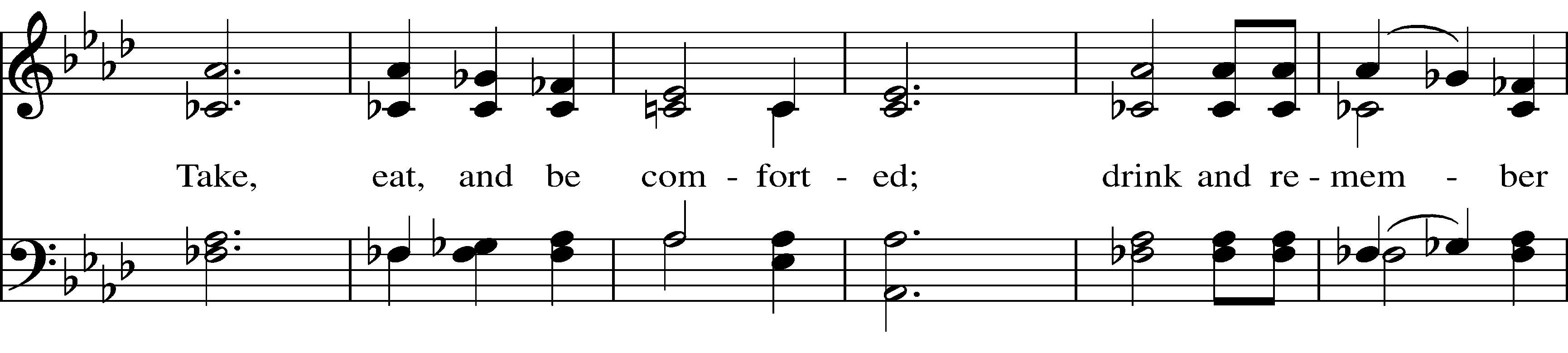 The gifts of God for the people of God. Take them in remembrance that Christ died for you, and feed on him in your hearts by faith, with thanksgiving.