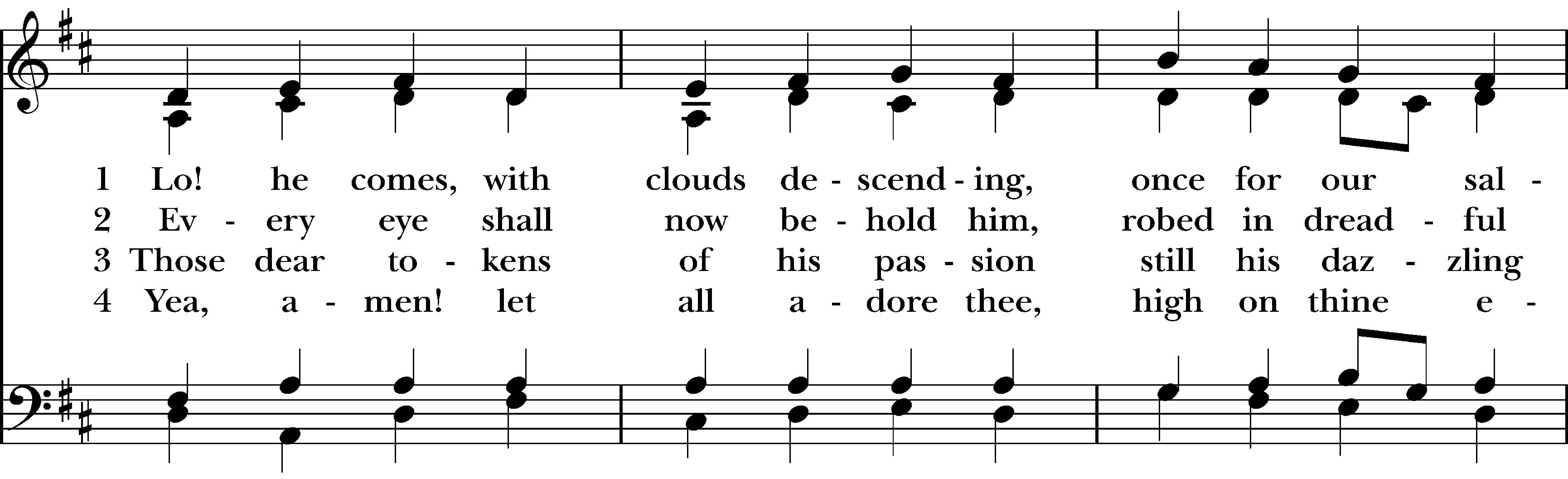 Stand as able and sing verses 1,2, followed by the Gospel reading, and then verse 3,4. Hymnal 1982, #58